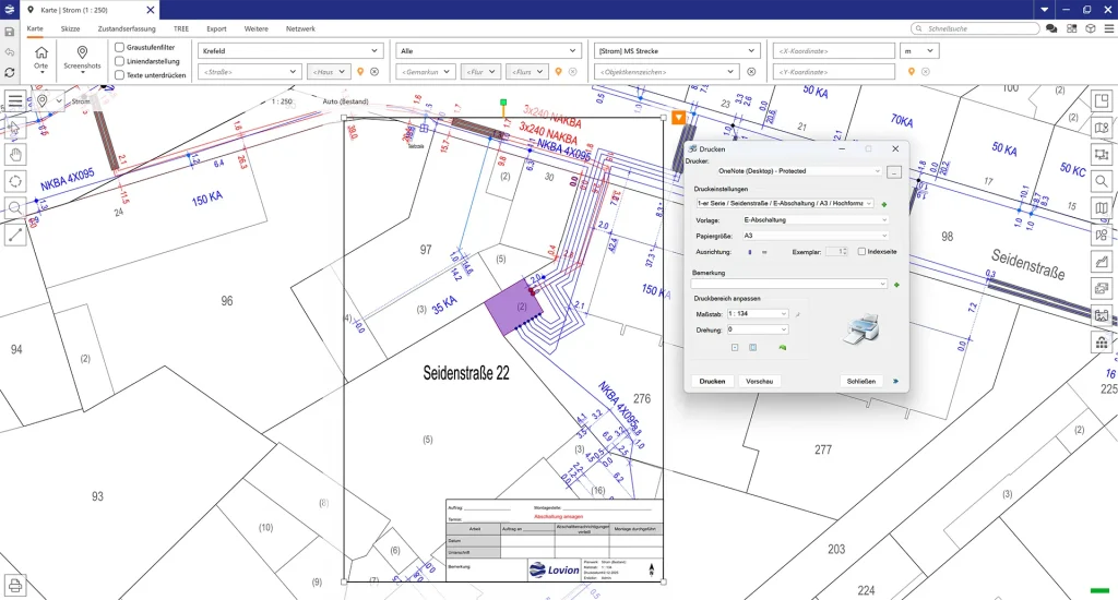 Durch die immer größere Verbreitung der Software Lovion BIS als Intranet-Auskunftssystem kommt der Druckausgabe eine wachsende Bedeutung zu. Das Lovion BIS nutzt hier die nativen Druckertreiber des Betriebssystems und unterstützt jetzt auch die Definition beliebig vieler eigener Druckvorlagen. Die Ausdrucke können dabei im Quer- und Hochformat erzeugt und beliebig skaliert und gedreht werden.