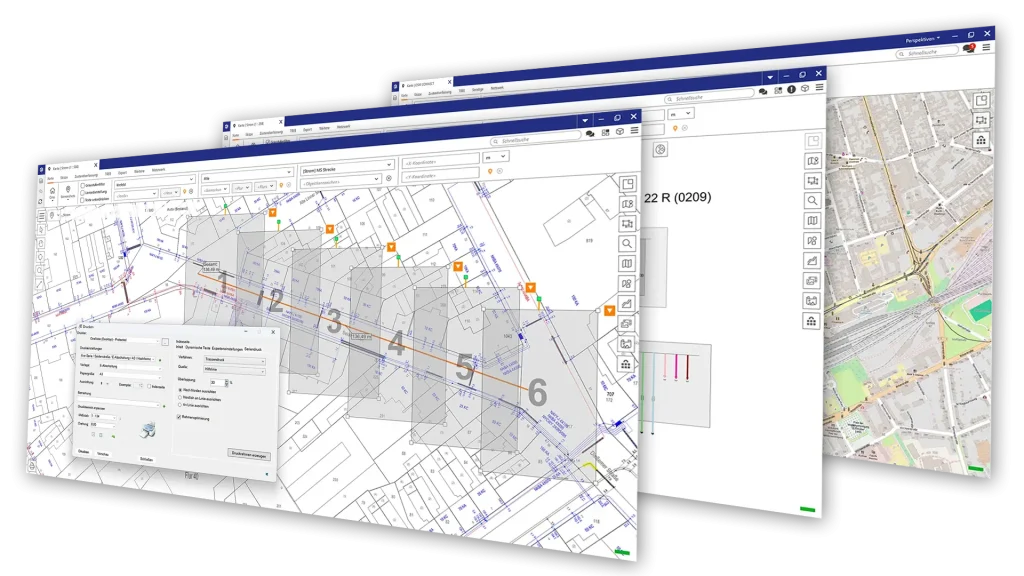 Der Multithemendruck ermöglicht dabei die Ausgabe mehrerer Themen in einem Druckvorgang. Über eine Seriendruckfunktion können auch mehrere Rahmen automatisch entlang einer Trasse definiert werden. Dabei kann auch eine prozentuale Überlappung sowie die Ausrichtung der Rahmen konfiguriert werden.