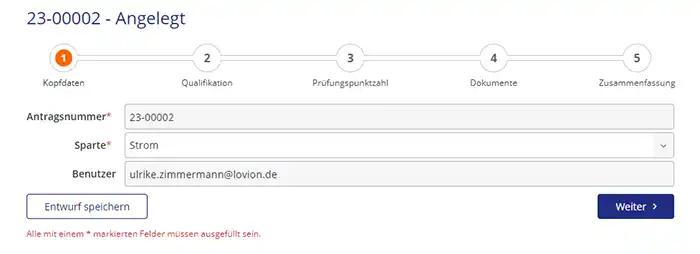 Lovion INSTALLER PORTAL unterstützt als browsergestützte Software-Lösung den Zulassungsprozess von Dienstleistern zur Aufnahme in das Installateursverzeichnis. Der Antragsteller kann alle notwendigen Informationen und Dokumente in einem digitalen Antragsformular erfassen. Dabei kann er die Bearbeitung auch jederzeit unterbrechen und Zwischenspeichern falls ihm zum Beispiel noch Informationen fehlen. Wenn er alles erledigt hat, gibt er den Antrag frei.