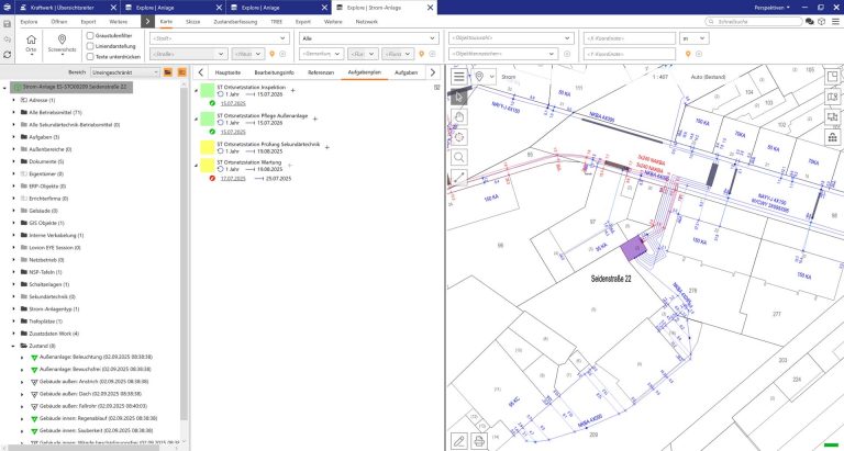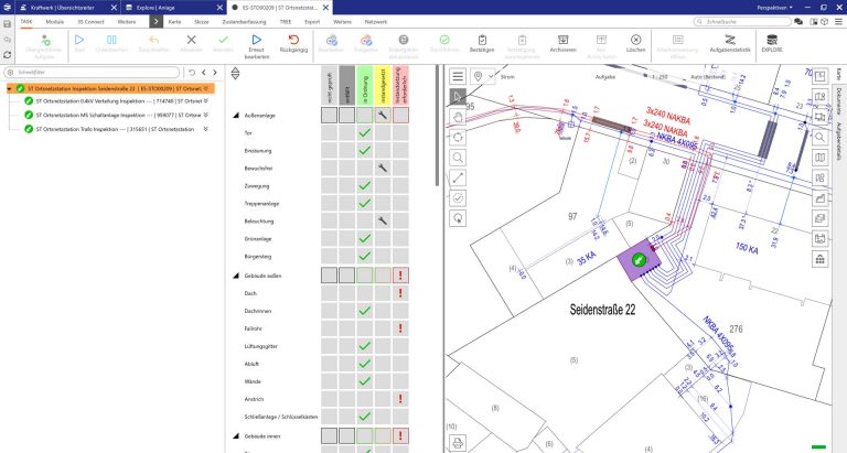 Prüfungen und IH-Maßnahmen zur Inspektion und Wartung sind wiederkehrende Aufgaben, die an Anlagenobjekten abgebildet werden. Protokolle und Ergebnisse werden direkt dem Anlagenobjekt zugeordnet und sind in dessen Historie einsehbar. Für die Bearbeitung stehen ergonomische Oberflächen zur Verfügung, die alle Eingaben des Benutzers unterstützen, wie zum Beispiel: