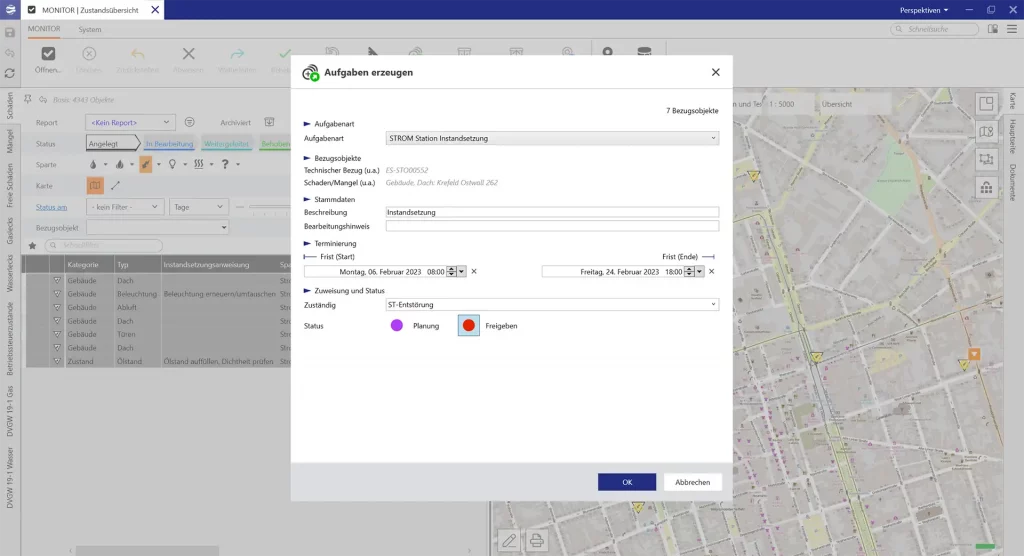 Neben den geplanten Maßnahmen im Rahmen der Instandhaltung entstehen Schäden auch durch ungeplante Maßnahmen im Störungsmanagement. Auch wenn ein Schaden im Rahmen der Entstörung entsteht, wird dieser in Lovion MONITOR dokumentiert und die Folgeprozesse können dementsprechend mit den gleichen Funktionen abgewickelt werden.